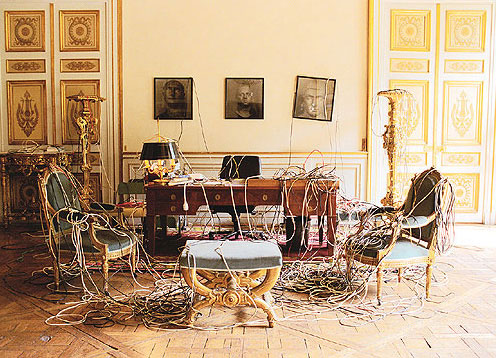 "Extension cord made out of found electrical wires, connected to each other. Project 'Restore Hope' aims to have a cord of about 11.900 km to help out the Silicon Valley in case of a power blackout from my apartment in Paris. 810 meters are finished"