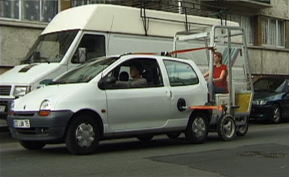 The Para Site is a vehicle that is entirely dependent, in that it relies on negociation in order to move: firstly an extension cord can be plugged into an electricity source (for example shops or neighbours), or secondly it can be pulled along by another car using a suction disc.